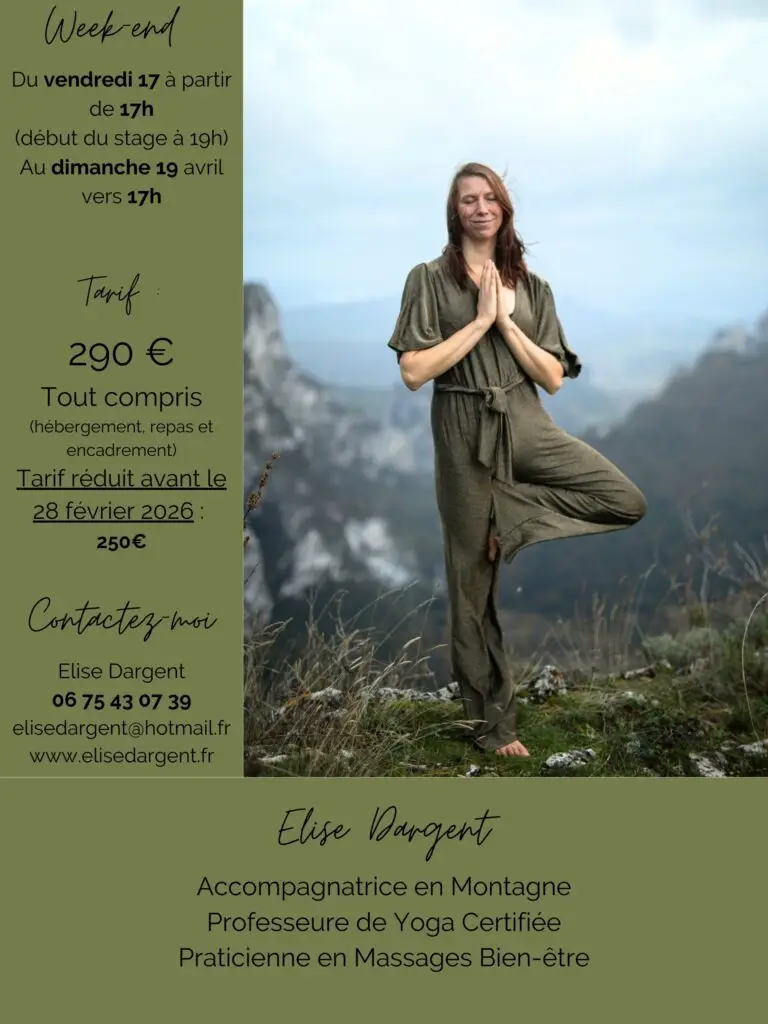 Je suis également accompagnatrice en montagne et professeure certifiée de Yoga. Je propose des retraites «Ressourcement Nature» pour faire découvrir ces deux pratiques dans un état d’esprit authentique, joyeux et bienveillant.